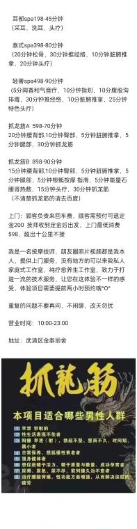 妹子自述按摩师,感觉去两次可以升个级啥的,科技脸,好身材,还能一字马,如果能好好聊聊能开大应该感觉不错,可以抱着做 具体项目看明细