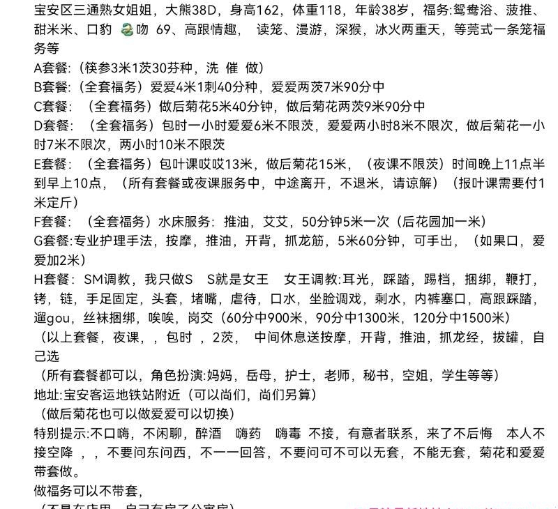 服务项目: 鸳鸯浴 菠推 甜米米 口豹