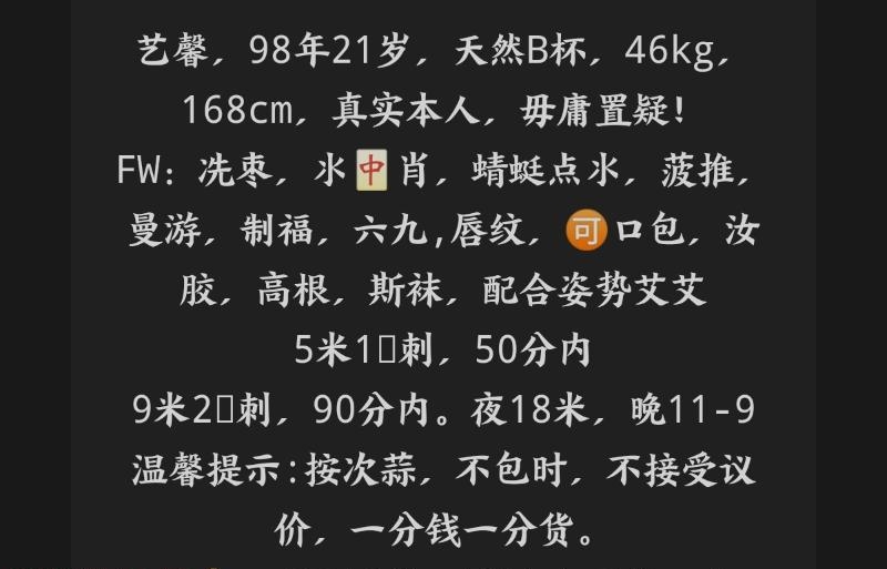 三刷了,感觉有点熟了快腻了,以后可能不去了。到地方遥控上楼,楼下有望风的,三四个合租,到了直接找苍苍,第一次的时候确实服务拉满,而且服务花样挺多的,两水,不行的兄弟可以试试。屁股圆润肥美非常适合后入打桩!