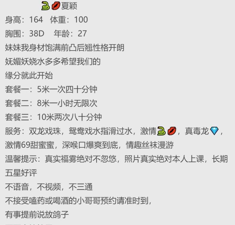 三刷了,感觉有点熟了快腻了,以后可能不去了。到地方遥控上楼,楼下有望风的,三四个合租,到了直接找苍苍,第一次的时候确实服务拉满,而且服务花样挺多的,两水,不行的兄弟可以试试。屁股圆润肥美非常适合后入打桩!