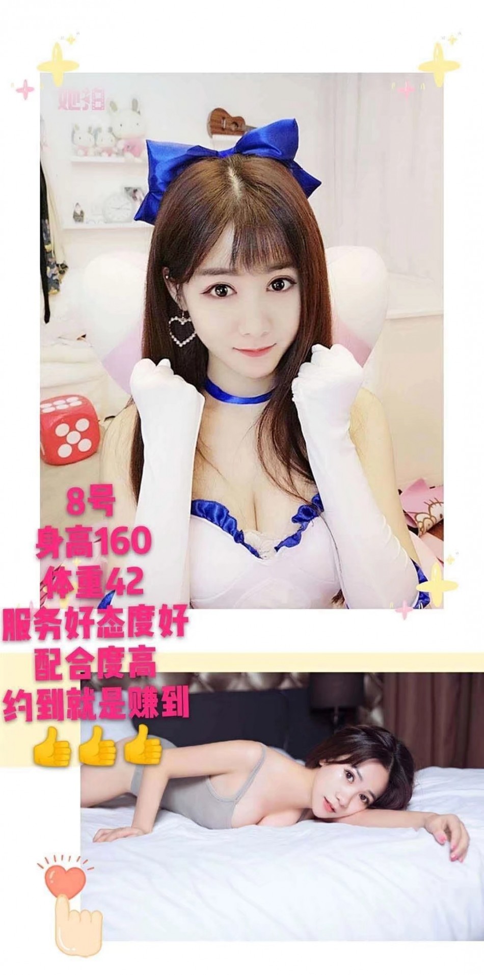 老师是从东莞过来的,课表写的主打服务。也挺便宜的3p5pp性价比不错,小区无摄像头自由进门。穿着一身黑丝开门等我,态度好倒了温开水给我喝。一开始就跳骚舞吸引我,手机放着暧昧的音乐,一边跳舞一边用手抚摸我的小弟,拿着我的手摸它的大胸,d罩杯有的,跳了几分钟我就躺着叫她服务了,口活有节奏,用嘴吞下整个蛋蛋,毒龙含着热水,舌头用力往里顶,整得菊花灿烂,老师的妹妹里面有肉齿,插进去咬的紧紧的,越草水越多,我选了2次,第一炮没多斤就交代了,第二次各种姿势,老师叫的更骚了,十几分钟后完事抽根烟就走了,爱好服务的来冲吧。