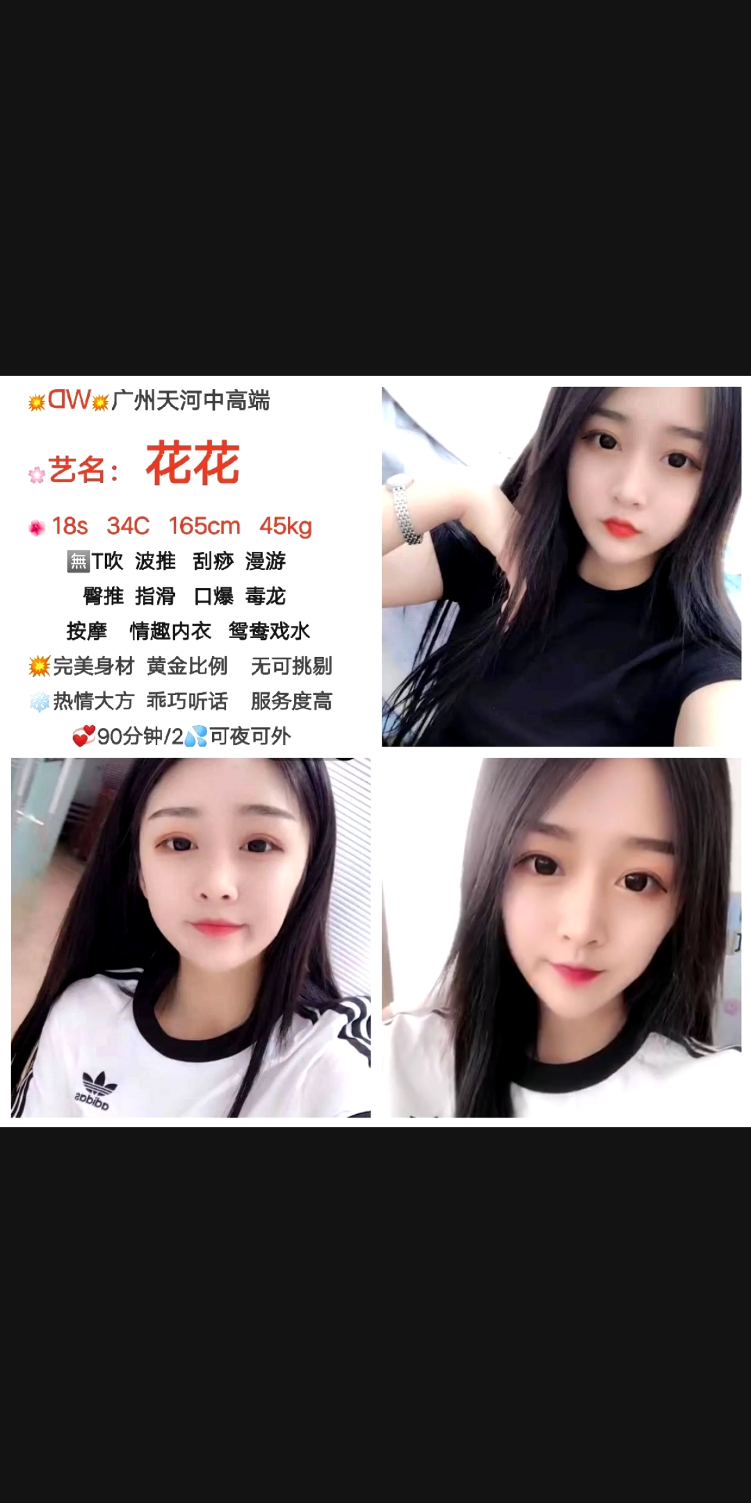 老师是从东莞过来的,课表写的主打服务。也挺便宜的3p5pp性价比不错,小区无摄像头自由进门。穿着一身黑丝开门等我,态度好倒了温开水给我喝。一开始就跳骚舞吸引我,手机放着暧昧的音乐,一边跳舞一边用手抚摸我的小弟,拿着我的手摸它的大胸,d罩杯有的,跳了几分钟我就躺着叫她服务了,口活有节奏,用嘴吞下整个蛋蛋,毒龙含着热水,舌头用力往里顶,整得菊花灿烂,老师的妹妹里面有肉齿,插进去咬的紧紧的,越草水越多,我选了2次,第一炮没多斤就交代了,第二次各种姿势,老师叫的更骚了,十几分钟后完事抽根烟就走了,爱好服务的来冲吧。
