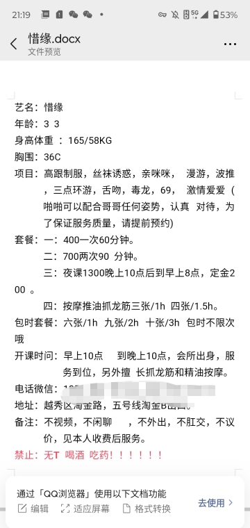 服务项目: 毒龙 吹箫 爱爱 漫游 胸推